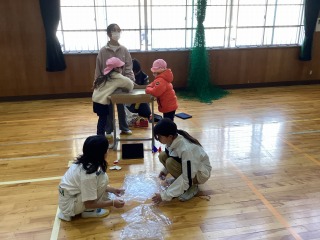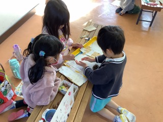今日は、富士見幼稚園の年長さんが5年2組との交流会に富士見小学校に来てくれました。5年生はこの日のために幼稚園児が楽しんでもらえるような遊びを考え、たくさんの準備をしていました。園児も5年生も笑顔あふれる素敵な時間となりました。