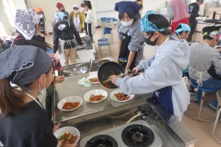 今日は6年2組が家庭科の学習で調理実習を行いました。班の友だちと一緒に『ベーコン巻き』を作りました!準備から片付けまでを協力して、楽しく学習を進めることができました。今日学んだことをいかして、この土日は子どもたちがお家でごはんを作ってくれるかも・・・!?
