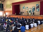 今日は全校児童が体育館に集まり音楽集会が行われました。どの学年も日頃の音楽学習の成果を他の学年に発表しました。