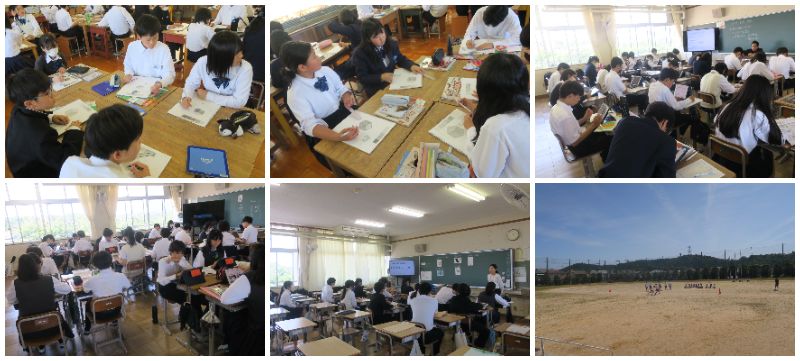 3連休明けの授業の様子です。3年生が実力テストのため校舎内はいつも以上に静まりかえっています。グラウンドで2年生がソフトボールをする元気な声だけが学校に響いています。美術のしおりづくりに集中して取り組んでいます。1年生の英語はタブレット端末を使いリーディングの練習をしていますがタブレットが思うように認識してくれず同じ英文を繰り返しています。最後は上手くいったのでしょうか。2年生の理科は電流回路の練習問題に取り組んでいます。静かなスタートを切っています。