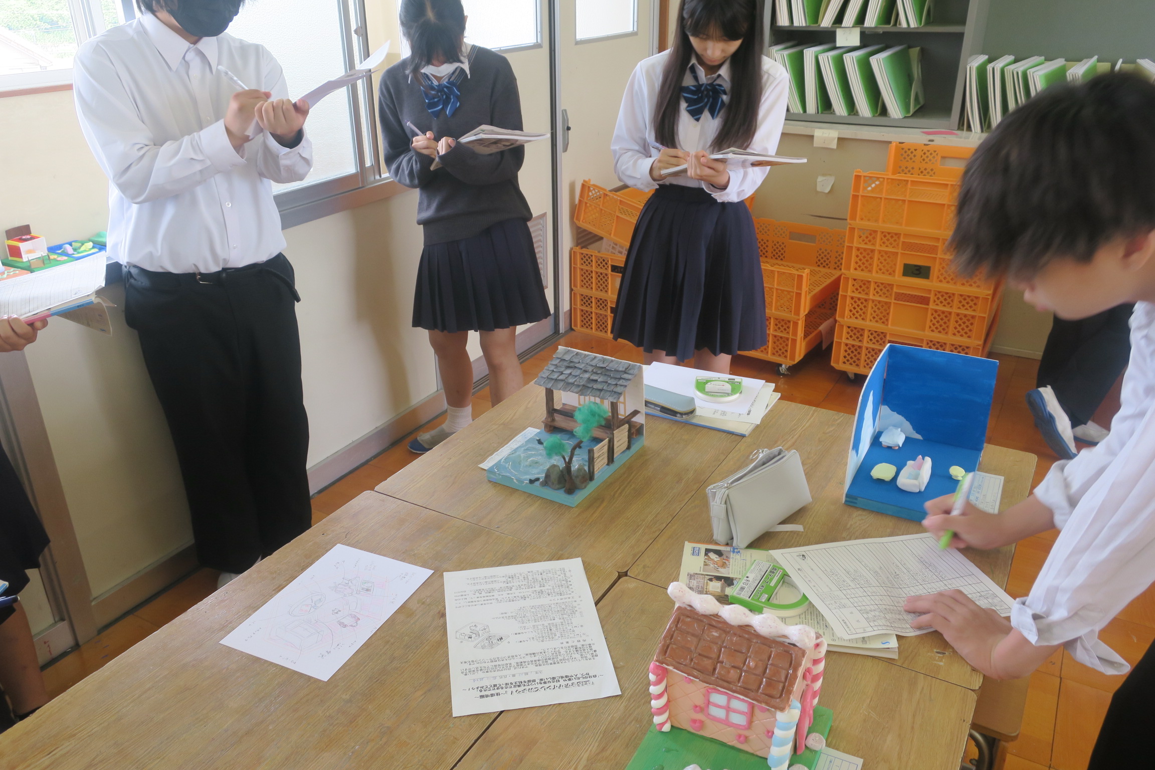1年2組は音楽の授業でした。グループに分かれてアルトリコーダーの練習をしていました。曲は「オーラリー」。それぞれのペースで音を確かめながら練習を進め、グループごとに協力し合う姿が印象的でした。