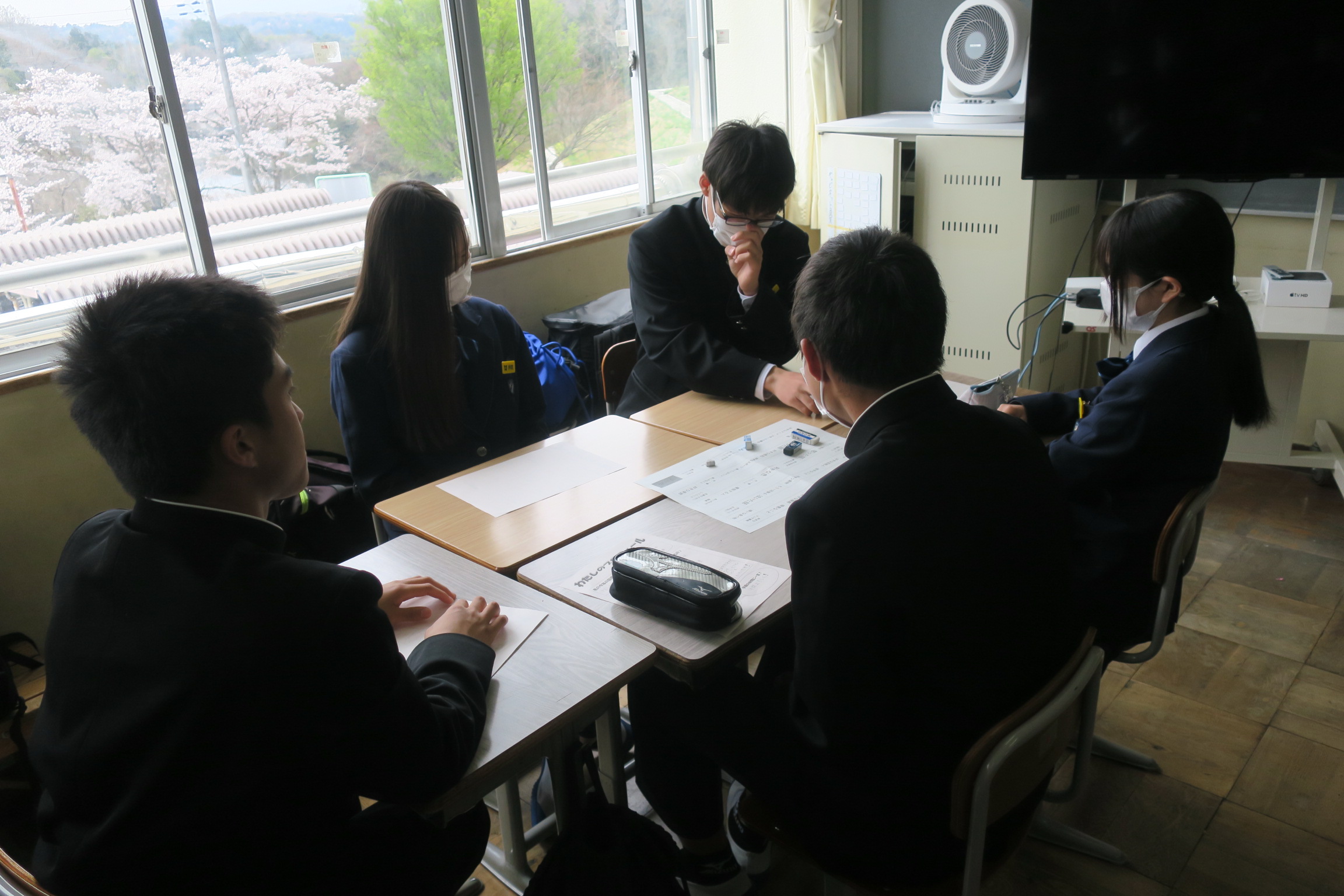 3年1組は美術の授業でした。「しおり」づくりに取り組んでいました。3年2組は社会の授業でした。平和主義の内容でした。憲法第9条、自衛隊について考えていました。3年3組は理科の授業でした。水中で「力はどのようにはたらくのか」の課題を実験で確かめていました。