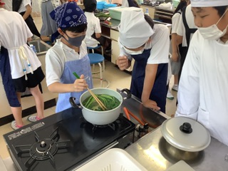 学級閉鎖もあり、全員が揃うことができなかった今週ですが、家庭科のエプロン作りをスタートしました。