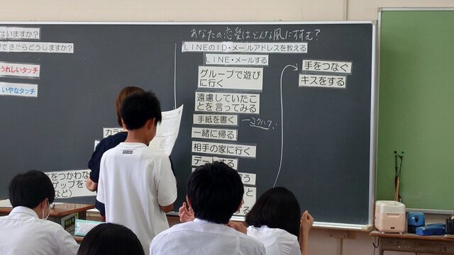 今日の1時間目は、3年生の理科で体細胞分裂と減数分裂の仕組みの違いをグループで話し合って発表していました。1年生の道徳では、「いただきます」の意味は何か、グループで話し合っていました。