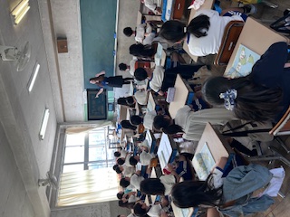 4年生の仲間たちは、2年前に自分たちが学んだ時のことを重ね合わせながら聞いていたようで、発表後のふりかえりの時間には「僕は近江神宮駅に行って線路がたくさんあることに驚いてん!」といった当時の感想や、「宇治川餅、また食べたくなったわ!週末買いに行こ!」などといった思いをお互いに伝え合いました。