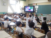 手芸クラブの4年生から6年生が配膳台カバー作りに取り組んでいます。この日は地域のボランティアの皆様に来校いただき、アイロンがけやミシン縫いなど、いろいろなお手伝いをしていただきました。