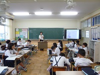 外国語の学習。ALTのジョイス先生と一緒に学習をしました。
