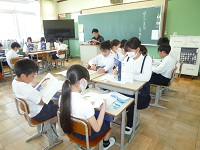 今日の5時間目に、幼稚園や保育園、子ども園などから先生方が参観に来られました。