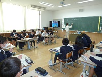 学級活動の時間。昼休みに開かれた代表委員会についての報告をしてくれました。