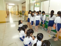 体育館で順番を待っている間は、他の学年がんばっている姿を応援していました。