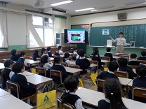 国語の授業で、『どうぶつのじゅういさん』の学習をしてきました。今日は、その学習のまとめと発展学習として、京都市動物園の生き物・学び・研究センターの方とオンラインでつなぎ、出前授業を行いました。