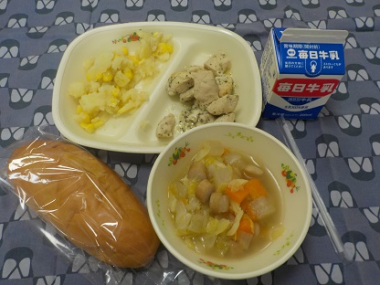 今日の献立は、麦ごはん、牛乳、