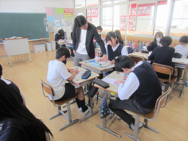 今年度最後の給食です。1年生たちの当番ぶりもしっかりとしています。おいしくいただきました。
