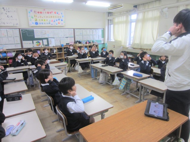 音楽科。『こいぬのマーチ』を歌いました。この後、鍵盤ハーモニカで演奏もしました。