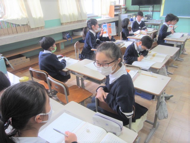 自分たちでお昼ご飯をつくります。その献立を班ごとに考えています。