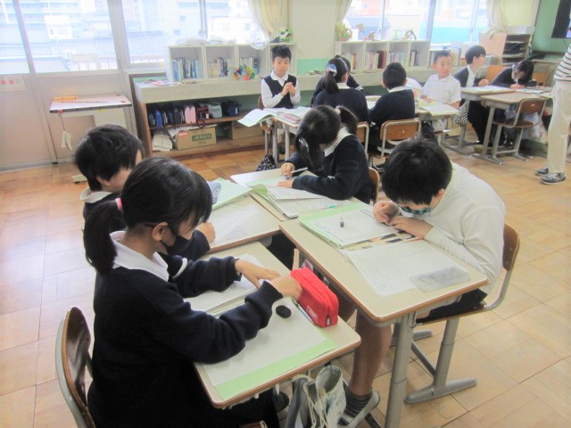 3年算数科。落ち着いてプリント学習に取り組んでいました。