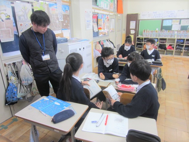国語科。使う言葉や話し方など、聞き手の表情を見ながら説明を加えます。