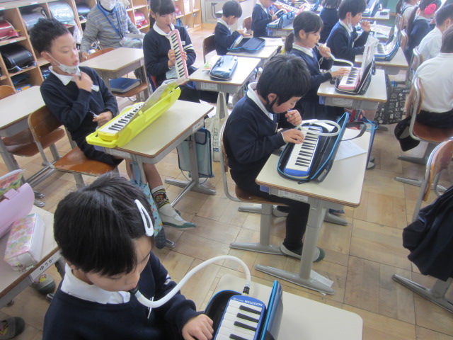 音楽科。場面の様子を思い浮かべて、鍵盤ハーモニカで演奏しました。