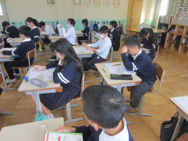 算数科「小数と整数のかけ算・わり算」のテスト中です。