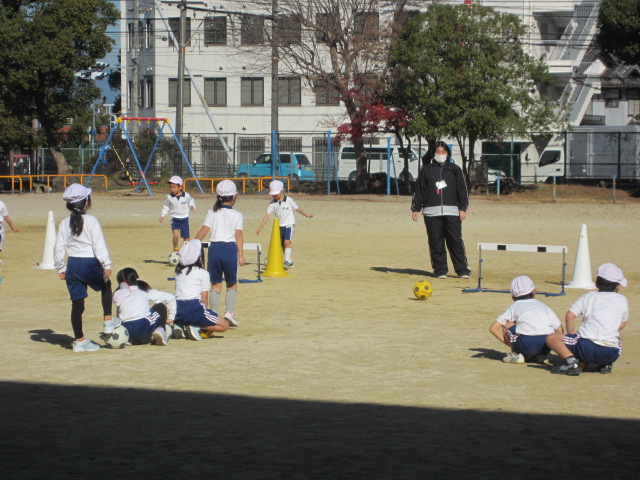 生活科。それぞれが、いろえんぴつで絵や模様を描いた「たこ」をあげました。