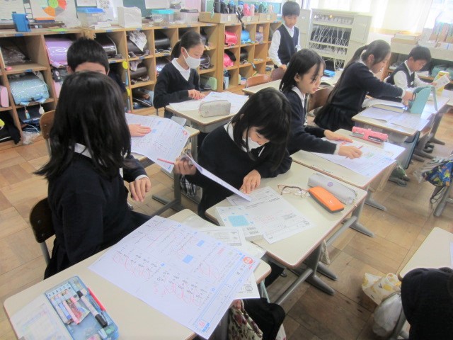 4年生は「小数のわり算」に、3年生は「小数のたし算」に取り組んでいました。