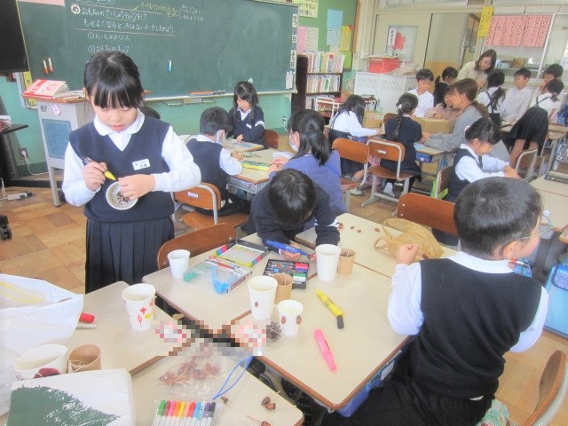 図画工作科。B組のスチレンはんがは「ぼうし」です。