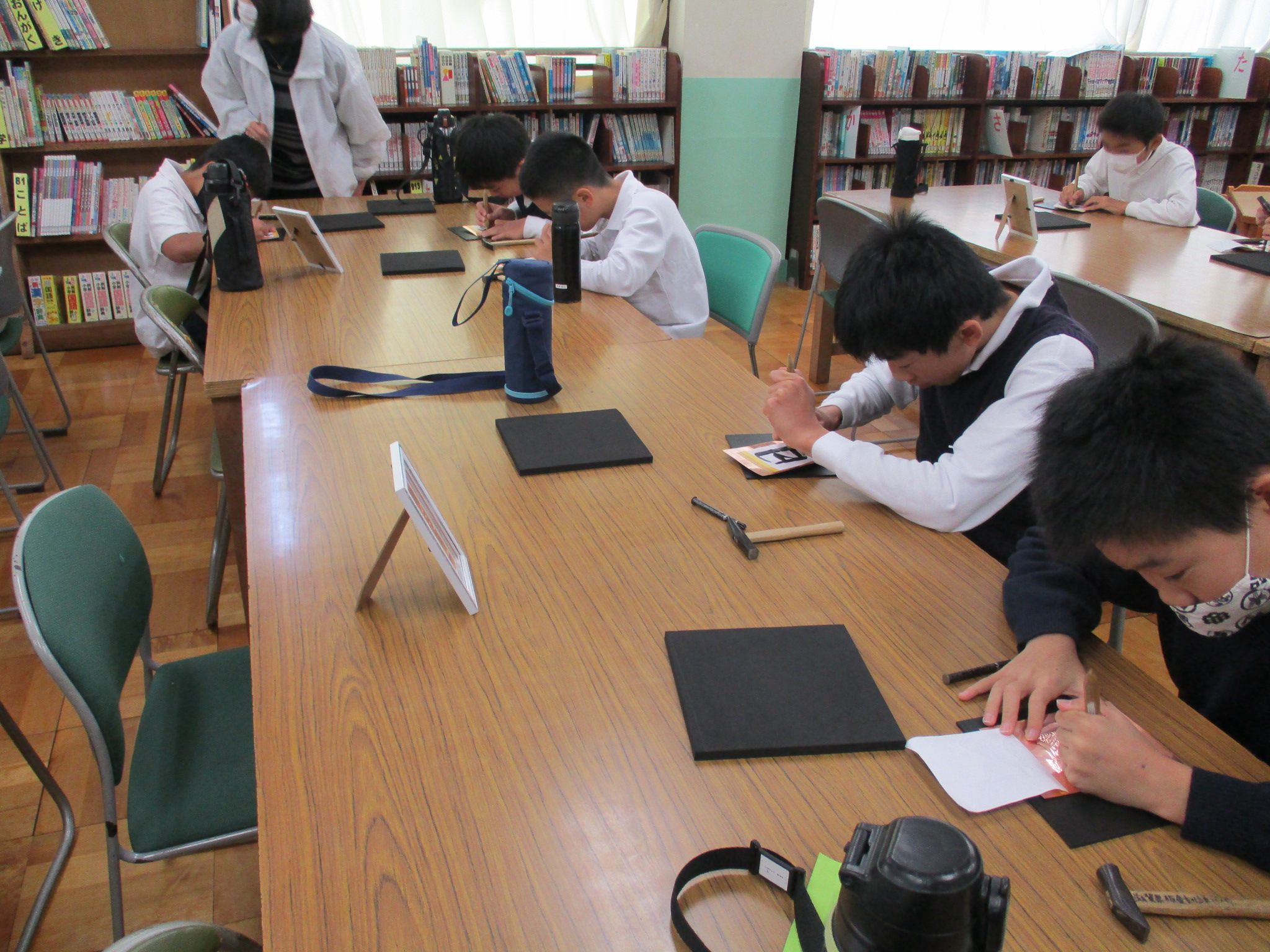 国語科。読んだ本をカードに書いて、友だちに知らせます。