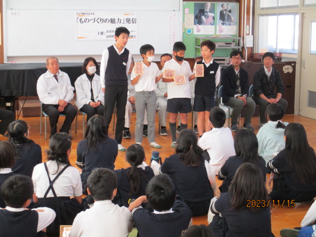 国語科。3つの単語が結び付いた複合語を出し合いました。