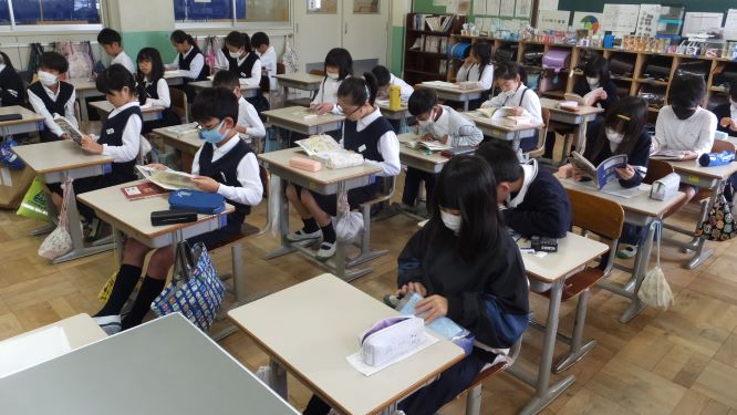 図書室で読書です。