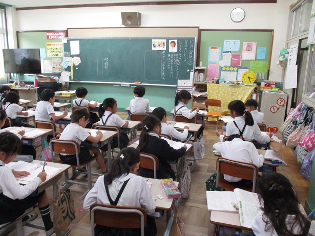 3年生の教室を訪問したとき、ちょうど整理整とんの時間でした。