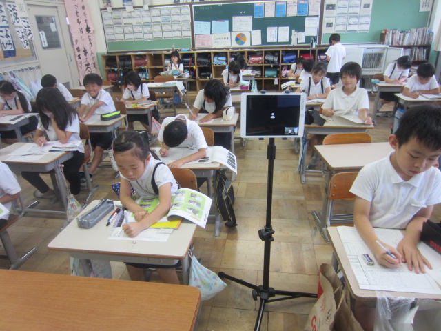2年生は音読げきをして、その様子をタブレットで確認していました。