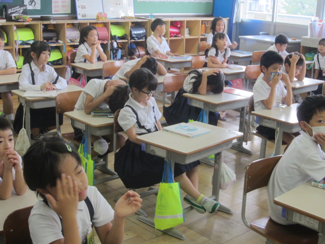 5,6年生は、それぞれの委員会メンバーで今週の活動を確認します。