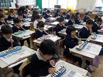 算数の学習。どちらの学級も、『対称な図形』の学習を進めていました。