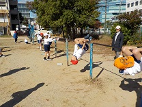 今日は、事前に教室でめあてやルールを確認し、チームごとに作戦を考えてから、運動場に出てゲームをしました。