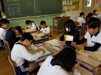理科の学習。『地球に生きる』の学習で、テーマに合わせて自分が考えたことを発表しました。