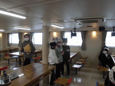 うみのこに乗船しました。活動室に入り、わくわくが高まってきました。いよいよ出港です。