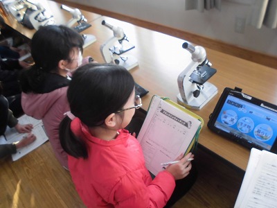琵琶湖学習がスタートしています。プランクトンの観察や湖底の観察、魚の観察、透視度調査などローテーションしながら進めています。