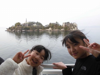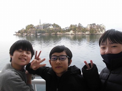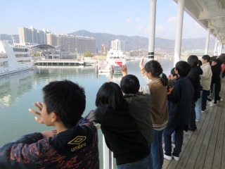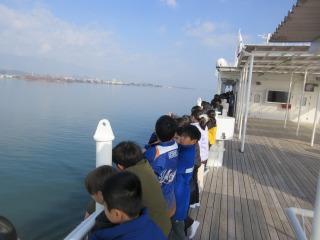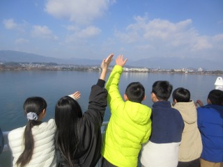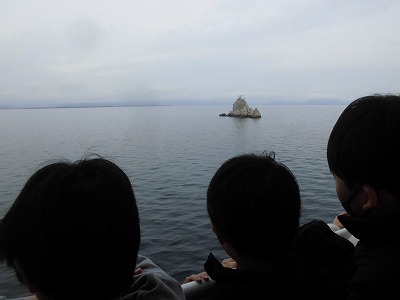 多景島、白石展望をしました。それぞれの島について歴史や云われについて詳しく教えてもらい、おもしろーいと言いながら展望している子がとても多く、また、とても近くで見ることができ、フローティングスクールならではの学習の時間となりました。
