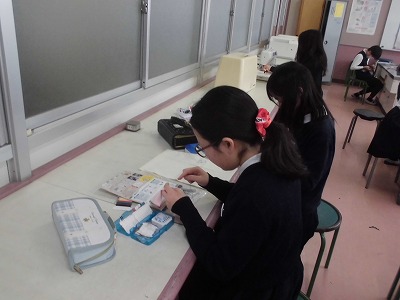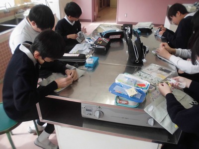 家庭科で2年間学習したことのまとめとして、それぞれが選んだものを思い思いに制作中です。ミシンを扱うのもとっても上手になりました。黙々と作業をしていました。