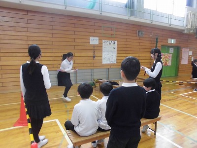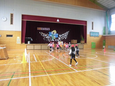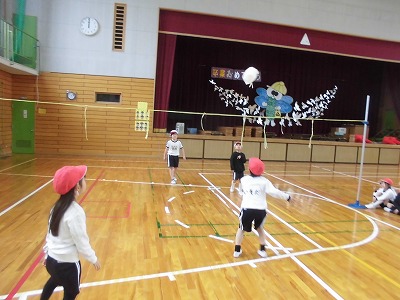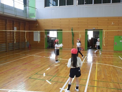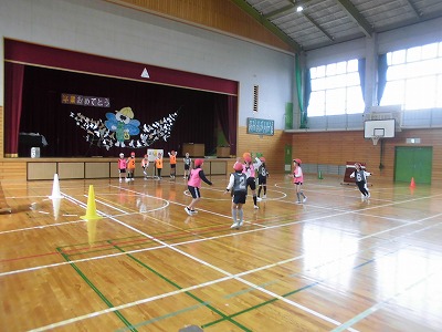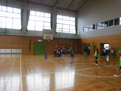 3年生は体育館で【セストボール】をしています。ルールを理解して、ゴールを入れるために声をかけあったり、パスをつないだりすることができるようになってきていました。