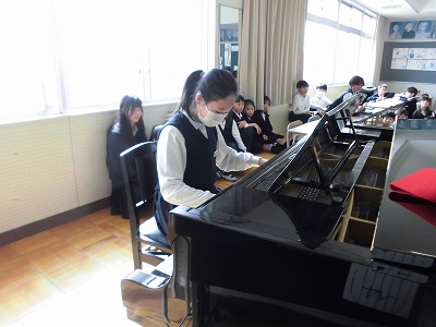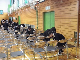 5年生が準備してくれた式場で、卒業式の構えや流れ、座席の確認、授与の練習等を行いました。例年に比べて短い期間での練習になりますが、その分集中して取り組んでいました。