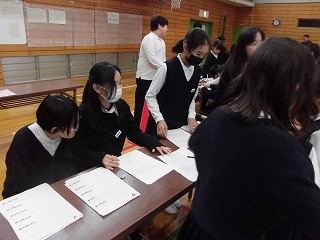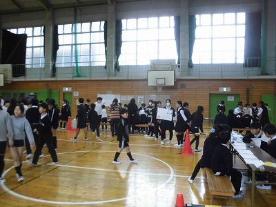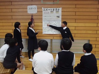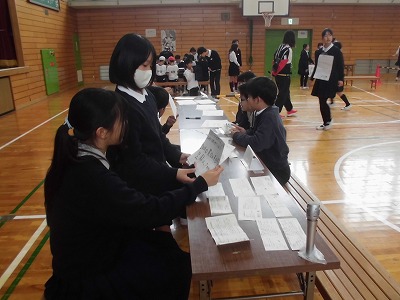 昨日に引き続き、昼休みに体育館で4,5年生を対象に委員会ふぇすを行いました。それぞれのブースで各委員会の特色や取組が分かるような催しがされていて、ふぇすに参観した児童は一生懸命に話を聞いたり、体験をしたりして充実した時間を過ごしました。来年度主体的に委員会を選び活動していくことに繋がる取組となりました。