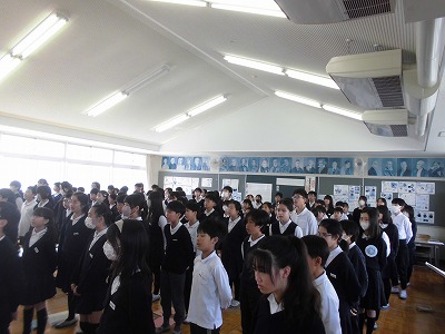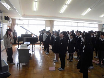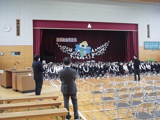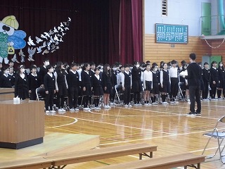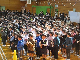 最後は、全校で「ありがとうの花」の歌を送りました。手話付きで、体育館が美しい歌声に包まれました。今日を含めて、6年生と過ごせるのもあと10日。10日目には卒業式があるので、それまでに6年生にありがとうの思いを伝えていけたらと思います。