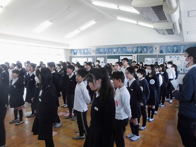 明日の6年生を送る会に向けて、6年生が出し物の練習をしていました。実行委員を中心に話し合いを進め、学年全体で感謝を伝えようと準備を進めています。卒業式に出席しない1〜4年生にとっては、6年生全員とふれあう最後の機会になります。明日が楽しみです。