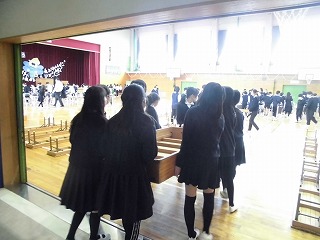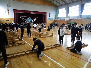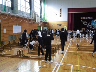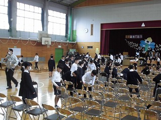 卒業式に向けての会場準備をしました。5年生が朝8:20〜テキパキと力を発揮していました。証書をいただく式台、卒業生用の椅子、保護者席など手分けして、椅子など安全に式が執り行われるように心を込めて準備していました。