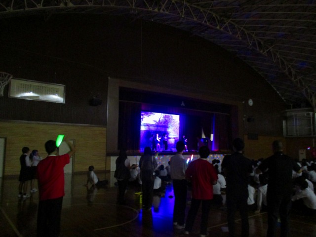 文化祭のオープニングを粟津中学校の体育館で実施しました。今年の文化祭のテーマは「粟津団結〜新たな1ページ〜」です。吹奏楽部の動画、生徒会のオープニング動画に続き、コンピュータ部の作品、有志のバンド、デュエット、ダンスと続きました。久し振りの全校そろっての文化祭オープニングでしたが盛り上がりました。出演者の皆さん、生徒会執行部のみなさんお疲れ様でした。