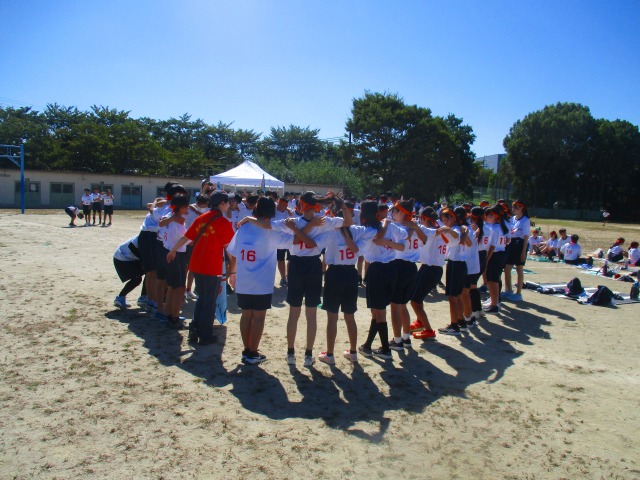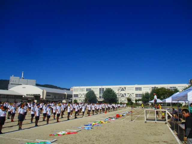 令和7年10月9日(木)秋晴れの中、令和7年度粟津中学校体育祭を開催しました。午前中は、ストレッチ体操で準備運動の後、二人三脚リレー、玉入れ、リム回しリレー、選抜リレー、縦割りリレー、綱引き決勝を行いました。教室で昼食、クールダウンの後、午後は大縄跳び、全員リレーを行いました。その後、校舎内に戻り、放送にて閉会式を行いました。結果を発表すると教室から大きな歓声が上がり、生徒のみなさんの体育祭にかける思いが伝わってきました。暑いくらいの天候で、久し振りの1日開催でしたが、各学級力を合わせて、精一杯取り組んでいました。見に来ていただいた来賓、保護者の皆様ありがとうございました。行事も終わり、3年生は進路に向けて、1,2年生は秋季新人大会へ向けて、気持ちを切り替えて取り組んでいきましょう!