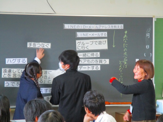 12月3日(水)、4日(木)2年生の各クラスで性教育を実施しました。脇野千恵先生に来ていただき、「自分の心と体を大切にすること」「相手を思いやること」「正しい知識を持つこと」について学びました。正しい知識を持つことで、自分を守り、相手を尊重することにつながります。今回の学びを学校生活や家庭生活にいかしてほしいと思います。