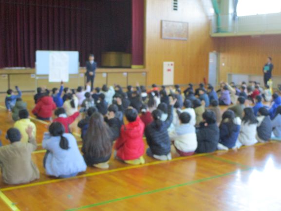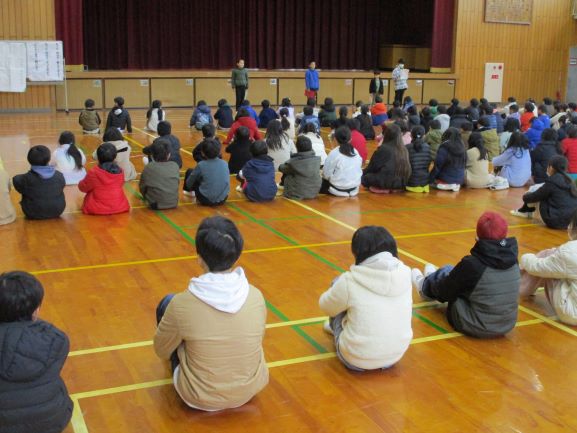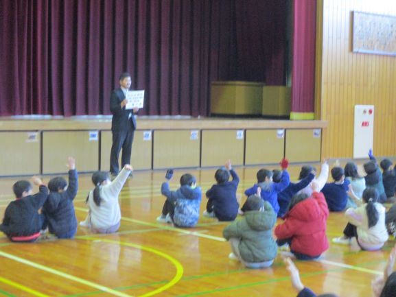 次に、冬休みの生活について、水口先生からお話(クイズ)を聞きました。約束をしっかり守り、楽しい冬休みにしてください。