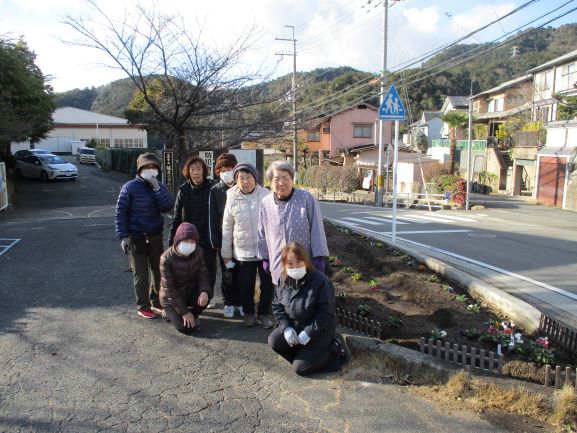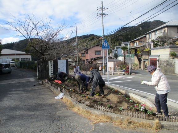 FFB(フジオ フラワー ボランティア)結集・校門前の花壇完成